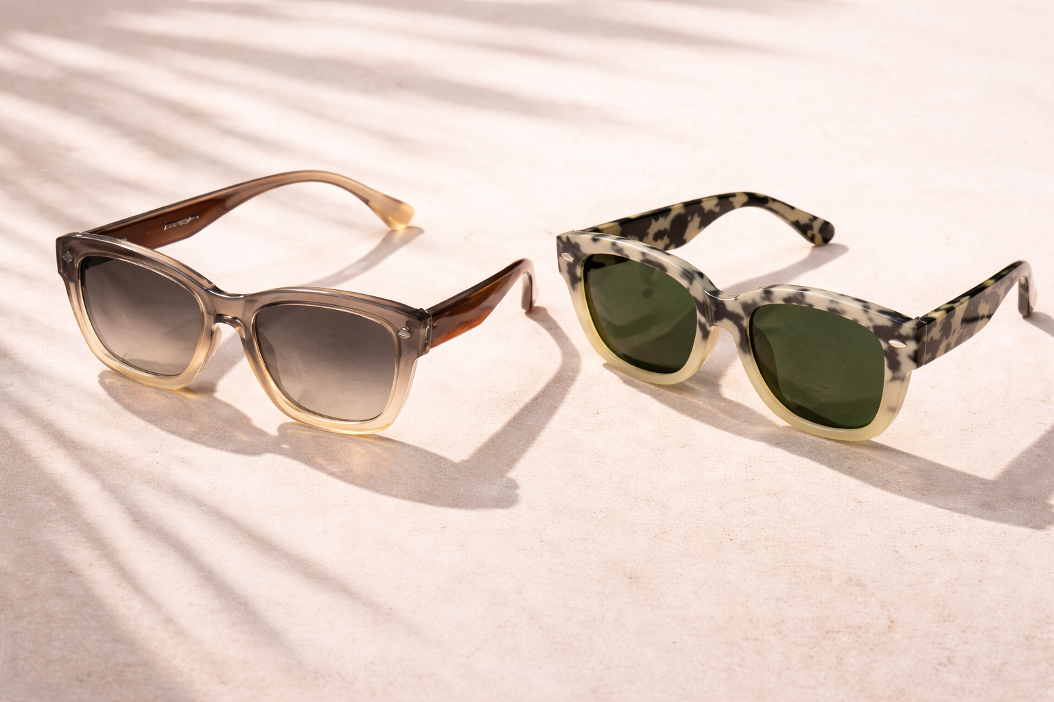 Lunettes de soleil élégantes en écaille de propionate de cellulose avec des verres foncés et une monture rectangulaire classique.
